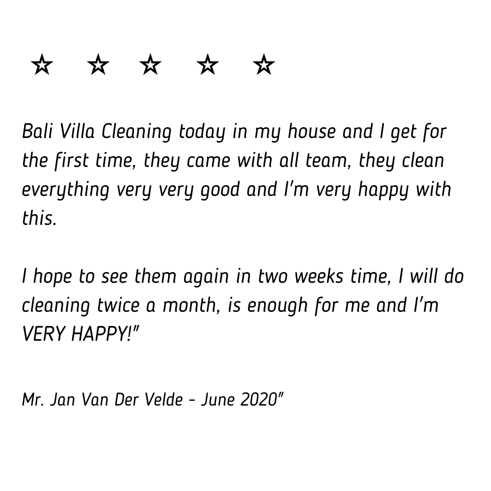 Bali Villa Cleaning (BVC) Provide operational & cleaning assistance for clients or hosts listed in vacation rentals (hotels and villas) on Airbnb, Booking.com, HomeAway, Tripadvisor, VRBO, and many more.